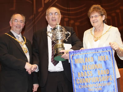 The Area competition this year was one of those days when all went well. We won, retaining our title for the first time since 2003! All in all we felt it was a good day’s work and a fitting reflection of the bands hard work and talent. Russell Gray was to direct us in “Salute to Youth”, a fitting tribute to our talent if not our ages, and we set off to work with great gusto! Our run up was one of the best we have had recently. There was good attendance and we made excellent progress in each rehearsal. Come the day of the competition we were pleased with a great draw, 17th. Having had a final run through off to battle we went. The performance came and went with a few apparent slips and lapses but never the less our quality shone through. Nothing detracted from the overall impression and despite leaving the “performance” in the band room we had the result we wanted. We would like to thank Russell for all his hard work with the band and look forward to working with him again in the future.